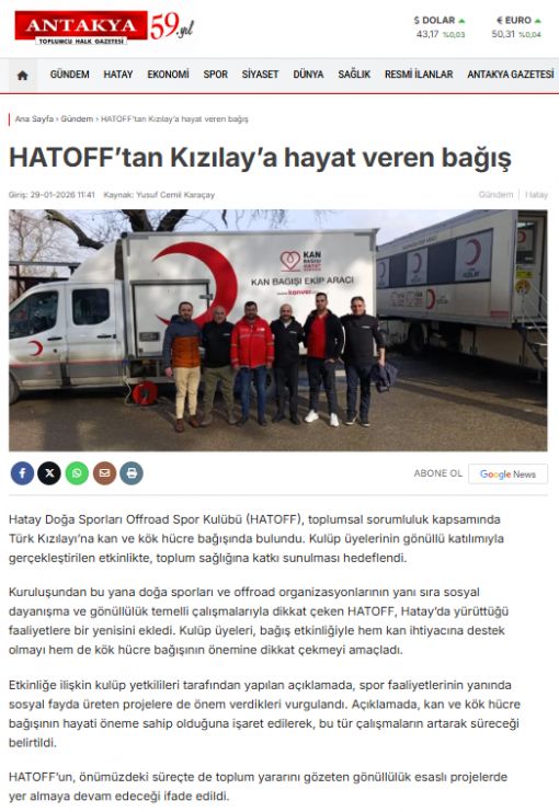 Türk Kızılayı ve Sağlık Bakanlığı arasında imzalanan Kök Hücre Protokolü çalışmaları gereği olarak Kızılay; Kök Hücre Bağışçısı kazanacaktır. Kök Hücre Bağışçılarından alınacak bir tüp kan, Sağlık Bakanlığı’nın belirlediği merkez laboratuarlara gönde![]() Veri tabanında kayıtlı bağışçılardan herhangi bir tanesinin doku tipleme testleri, kemik iliği nakli bekleyen herhangi bir hastayla uyuştuğu anda, bağışçıya ulaşılacak ve kemik iliğinin alınması için davet yapılacaktır. Böylesine hayati bir konuya uzak kalamayan kulüp üyelerimizin katılımı ile 28.01.2026 tarihinde Defne Esenbulak Prefabrik çarşısındaki Kızılay Kan Merkezinde HATOFF olarak öncü kulüp olarak katıldık.